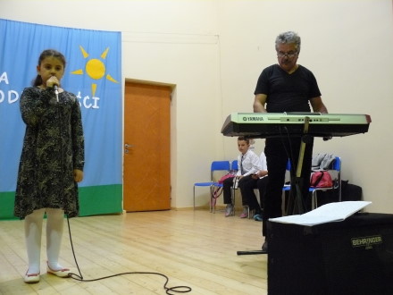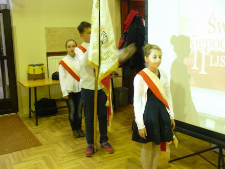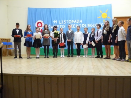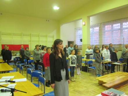 Na program złożyły się: komentarz historyczny, wiersze patriotyczne przeplatane piosenkami: „Wojenko, wojenko", „Rozkwitały pąki białych róż" - solo wykonała Kamila Tomana, „Legiony", „Tu wszędzie jest moja Ojczyzna", które wraz z uczniami śpiewała cała sala. Akompaniowali na harmonii- Adam Grabek, na organach -Wojciech Grochal. Wyprowadzono sztandar szkoły.