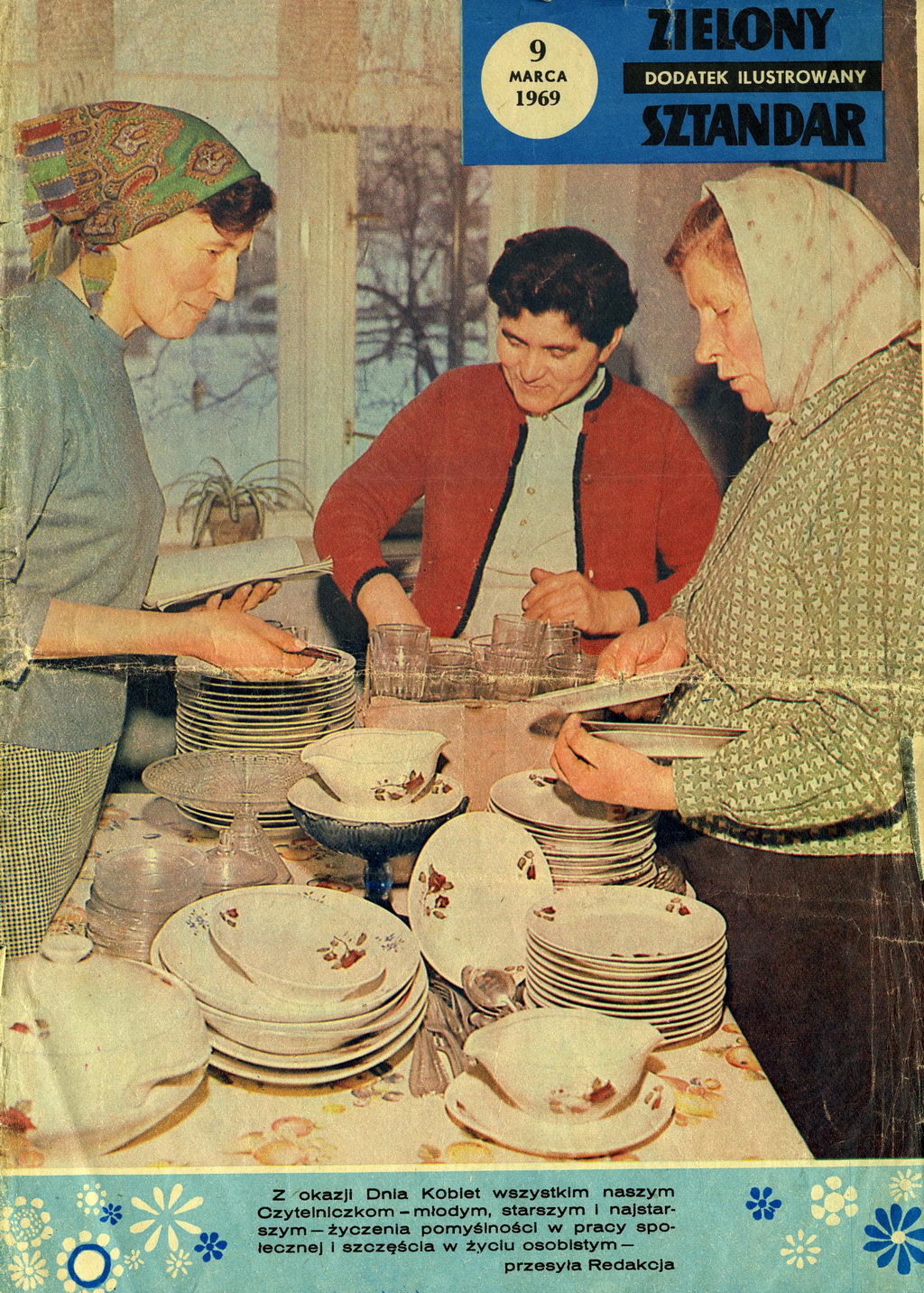 Właśnie na pierwszej stronie Dodatku Ilustrowanego „Zielonego Sztandaru" prezentujemy działaczki z KGW: Zofię Kusinę - przewodniczącą, Antoninę Piątek - skarbniczkę i Józefę Latosińską - sekretarza, które dokonują spisu posiadanego sprzętu.