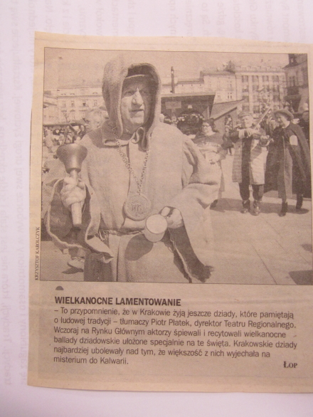 Anna Młynarczyk: „W jednej z krakowskich gazet był artykuł ze zdjęciem Piotra Płatka przebranego za dziada z komentarzem pt. „Wielkanocne kolędowanie" .