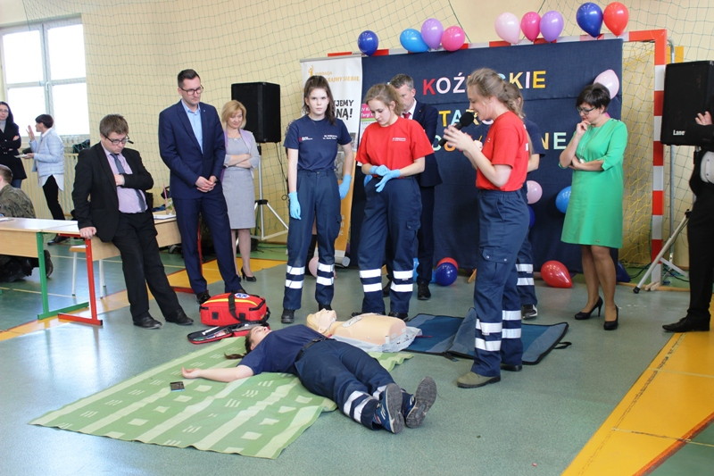 a następnie wystąpili uczniowie z Zespołu Szkół w Dobczycach w pokazie pierwszej pomocy.