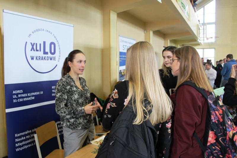 Po oficjalnej części obecni na targach uczniowie zapoznali się z ofertami edukacyjnymi zaproszonych szkół z terenu Wieliczki, Dobczyc, Świątnik Górnych, Niepołomic oraz licznie przybyłych szkół krakowskich. Zwiedzający mogli również skorzystać z konsultacji z doradcą zawodowym panią Elżbietą Kopytek z Powiatowej Poradni Psychologiczno – Pedagogicznej w Wieliczce oraz Panią Małgorzatą Bugaj – doradcą zawodowym z wielickiego liceum.