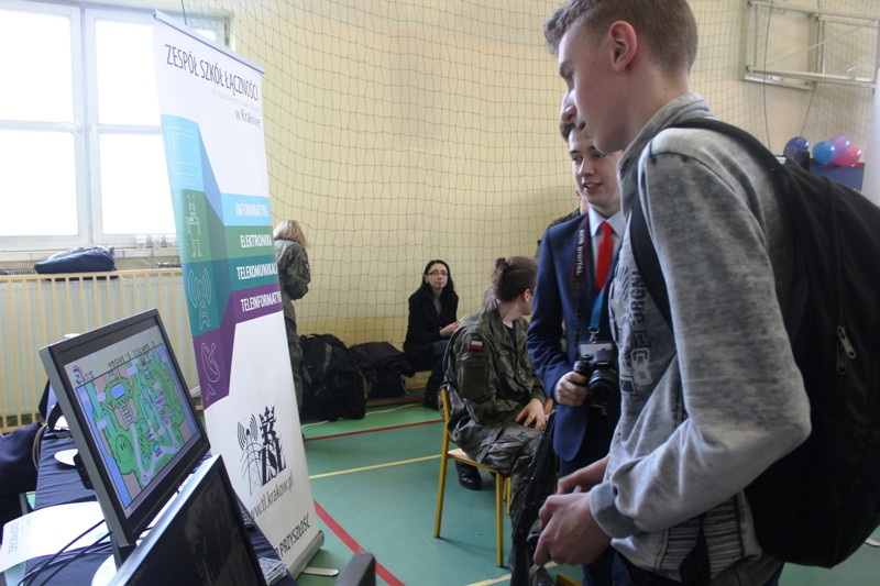 Uczniowie klasy 2c i 2b prezentowali system komputerowy, który zaprojektowali w ramach Małopolskich Talentów. W oparciu o ten system, na który składa się serwer, program do testów, strona www, przeprowadzili testy diagnostyczne na temat stosowania zasad cyberbezpieczeństwa wśród uczestników Targów Edukacyjnych.