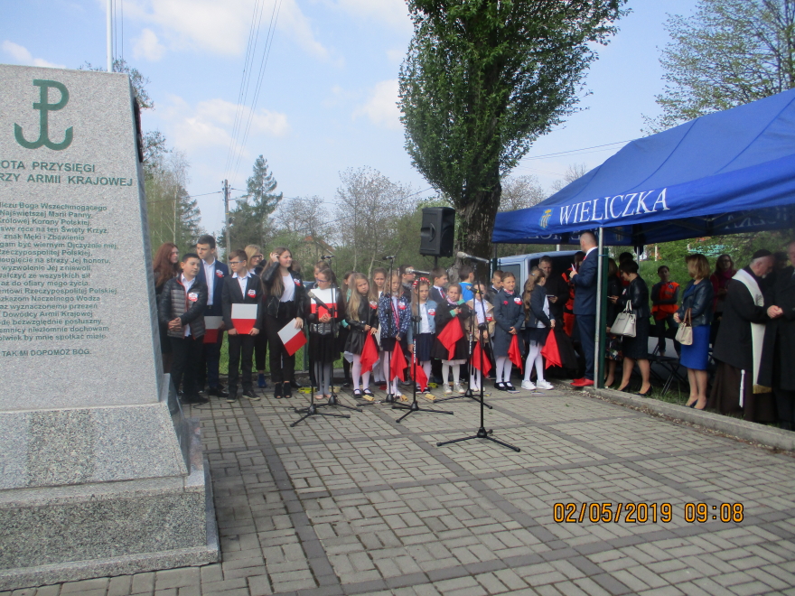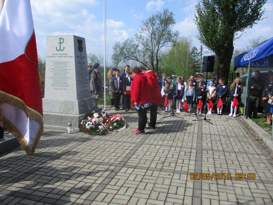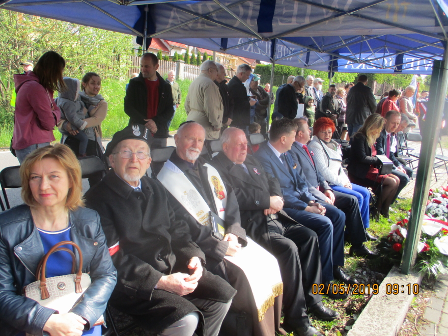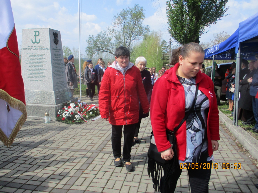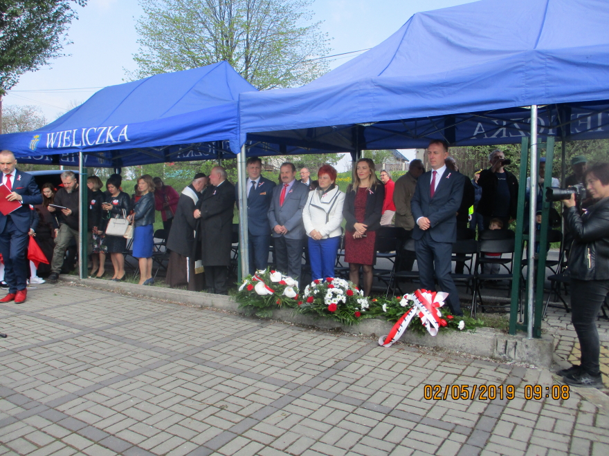 2 maja 2019 r. uroczystość prowadził Adam Marek Panuś, sekretarz Urzędu Miasta i Gminy Wieliczka. Rozpoczęto ją wprowadzeniem sztandarów: Koła Wieliczka Światowego Związku Żołnierzy Armii Krajowej, którego poczet tworzyli: Stanisław Dziedzic, chorąży, przewodniczący Koła Wieliczka ŚZŻAK bez uprawnień kombatanckich, Waldemar Pirowski, Małgorzata Przetaczek i Szkoły Podstawowej im. Obrońców Westerplatte w Koźmicach Wielkich z pocztem w składzie: Kacper Jagodziński, Emilia Kowal, Kamila Tomana, uczniowie klas ósmych. W asyście harcerzy z Hufca ZHP w Wieliczce im. E. Dembowskiego podniesiono flagę Polski na maszt. W pozycji na baczność wszyscy zaśpiewali hymn narodowy „Jeszcze Polska nie zginęła" z muzyką w wykonaniu „Orkiestry Koźmice". Prowadzący powitał zebranych, a w wśród nich gości: Jacka Platera, żołnierza AK, powstańca warszawskiego, reprezentującego majora Ryszarda Brodowskiego, prezesa Okręgu Małopolska Światowego Związku Żołnierzy Armii Krajowej, Jana Srokę, naczelnika Wydziału Zagranicznego Urzędu ds. Kombatantów i Osób Represjonowanych, o. Jerzego Pająka, kapucyn, kapelana organizacji kombatanckich i niepodległościowych z Krakowa, Andrzeja Lorenca, przewodniczącego Stowarzyszenia Sympatyków Ryszarda Kuklińskiego, Wojciecha Habelę, aktora zasłużonego w popularyzacji etosu Armii Krajowej w kraju i zagranicą, Henryka Gawora, v-ce starostę wielickiego, Artura Kozioła, burmistrza Miasta i Gminy Wieliczki z zastępcami: Agnieszką Szczepaniak, Piotrem Krupa, Tadeusza Lurańca, przewodniczącego Rady Miejskiej w Wieliczce i radnych Rady Miejskiej, rodziny i krewnych żołnierzy z placówki „Sosna-Las", Danutę Kaperek, dyrektor i Grażynę Gwiżdż, v-ce dyrektor Szkoły Podstawowej im. Obrońców Westerplatte w Koźmicach Wielkich. W uroczystości brali udział: Jacek Juszkiewicz, radny Powiatu Wielickiego, radni Rady Miejskiej w Wieliczce: Stanisław Dziedzic, sołtys Koźmic Małych, Małgorzata Przetaczek, nauczycielka w Szkole Podstawowej w Mietniowie, Kazimierz Windak, sołtys Koźmic Wielkich, Marek Śliwa ze Zrzeszenia „Wolność i Niezawisłość", Mieczysław Dańda z Katowic, Stanisław Czaja z Zakopanego, Hubert Cora, uczeń VI LO w Krakowie, Kazimierz Hankus, komendant Straży Miejskiej z pracownikami, Pomoc Maltańska, członkowie Stowarzyszenia „Klub Przyjaciół Wieliczki" i Stowarzyszenia Miłośników Koźmic, mieszkańcy Koźmic Wielkich i Koźmic Małych. Głos zabrali: Artur Kozioł, Jacek Plater. Z programem artystycznym wystąpiło 23 uczniów i uczennic Szkoły Podstawowej z Koźmic Wielkich z klas: I b: Maja Fliśnik, Julia Puch, Jadwiga Śliwa; II a: Zuzanna Grochal, Weronika Kurowska; II b: Alicja Bożek, Wojciech Hrynkiewicz - Studnik, Martyna Tomczykiewicz; III: Aleksandra Byczek, Karol Fliśnik, Filip Karp, Kamil Puch, Krystian Stachura, Anna Suder, Maria Wolanin; IV b: Antonina Śliwa; VI a: Piotr Kania, Michał Jasiński; VI b: Dominik Grochal, Emilia Hajduk; VII: Leon Śliwa i III c (oddział gimnazjalny): Katarzyna Czop, Zuzanna Czop. W programie wykorzystano fragment utworu Konstantego Ildefonsa Gałczyńskiego pt. „Pieśń o fladze" (recytowała Antonina Śliwa) oraz wiersz Czesława Janczarskiego pt. „Barwy ojczyste" (recytowały dzieci z klas I - III). Zaśpiewano dwie piosenki: „Ziemia ojczysta" - śpiewała Anna Suder i „Tu wszędzie jest moja Ojczyzna" - śpiewał Michał Jasiński. Natomiast uczniowie z klas I - III wykonały instrumentacje do utworu pt. „Szumi dokoła las". Uczniowie klas starszych przypomnieli historię flagi, znaczenie heraldyczne jej barw oraz ważne wydarzenia z historii Polski. Program z uczniami przygotowały nauczycielki: Kinga Hajduk, Katarzyna Kaczor, Adrianna Lembas. Po występie uczniów, Wojciech Habela recytował trzy wiersze: m.in. wiersz „Trzy ziemie" Feliksa Konarskiego. Ojciec Jerzy Pająk prowadził modlitwę w intencji żołnierzy ZWZ - AK Placówki „Sosna-Las". Następnie przed pomnikiem złożono kwiaty i zapalono znicze. Kolejno złożyli je: Jacek Plater, Jan Sroka, Artur Kozioł z Piotrem Krupą i Adamem Panusiem, Henryk Gawor, Tadeusz Luraniec z Małgorzatą Krasoń i Ludwikiem Gaworem, delegacja Stowarzyszenia „Klub Przyjaciół Wieliczki": Jadwiga Duda, prezes, Dorota Duda, Anna Ślęczka. Z koncertem utworów muzycznych pt.: „Wiązanka żołnierska", „Witaj Polsko", „Marsz śląski", „Marsz sztubak", „Marsz salut" wystąpiło Stowarzyszenie Muzyczne „Orkiestra Koźmice" pod dyrekcją kapelmistrza Adriana Drzewi. Uroczystość uświetnił swoim śpiewem pieśni patriotycznych Zespół Pieśni i Tańca „Troczanie" z Troków na Litwie, który po zwiedzeniu Kopalni Soli „Wieliczka" przybył do pod pomnik do Koźmic Wielkich z Magdaleną Golonką, kierownik Wydziału Kultury Urzędu Miasta i Gminy Wieliczka. Wszystkie występy publiczność nagrodziła gromkimi brawami. Uroczystość - przy słonecznej pogodzie - zakończyła się poczęstunkiem, tradycyjną grochówką przygotowaną i wydawaną przez członkinie Koła Gospodyń Wiejskich z Koźmic Wielkich: Elżbietę Woźniak przewodniczącą, Annę Załęczny, skarbnik, Dorotę Dudę, Jadwigę Dudę, Katarzynę Woźniczka. Maria Kurek, wdowa po śp. Piotrze częstowała wszystkich domowym ciastem. Dziękujemy rodzinie śp. Piotra Kurka za gościnę. Dziękuję: Grażynie Gwiżdż, Katarzynie Kaczor, Adamowi Czajczykowi za informacje do niniejszego artykułu.