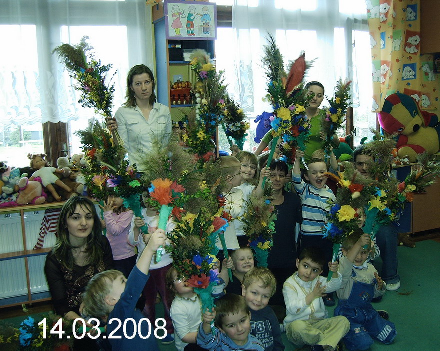 Któż z nas w Palmową Niedzielę nie niósł chociaż raz w życiu palm do kościoła ? Przedszkolaki wierne tradycji z pomocą rodziców , babć i opiekunek, przez dwa dni wytrwale pracowały nad przygotowaniem wielkanocnej palmy.