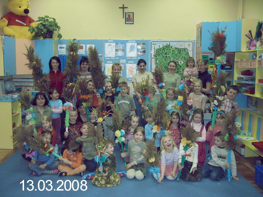 Jak to będzie w rzeczywistości - zobaczymy. Jedno jest pewne - pogoda jest zawsze, a niedziela Palmowa zyskuje na barwności, dzięki przedszkolakom pracowitości. Czasem już rozkwiecona ( dlatego Kwietna ), wystrojona baziami, kotkami i zielenią wierzbiny ( stąd Wierzbna ), zapowiada wieczną radość i żywotność.