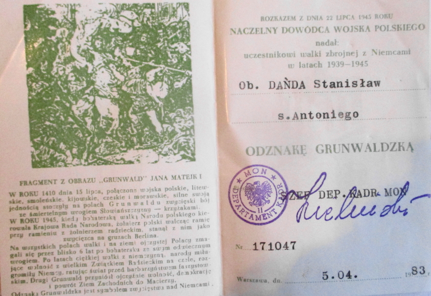 Zofia Dańda od 8.12.1988 r. była rencistą z tytułu szczególnych zasług dla PRL - legitymacja nr 1220/3438 (foto. 2978) a od 10.10.1997 r. była członkiem Związku Kombatantów Rzeczpospolitej Polskiej i Byłych Więźniów Politycznych - legitymacja nr 03690.