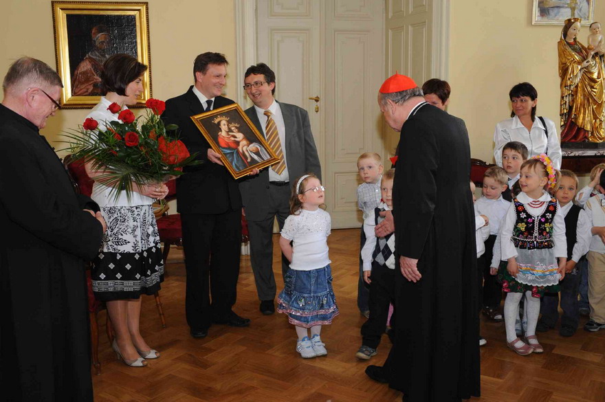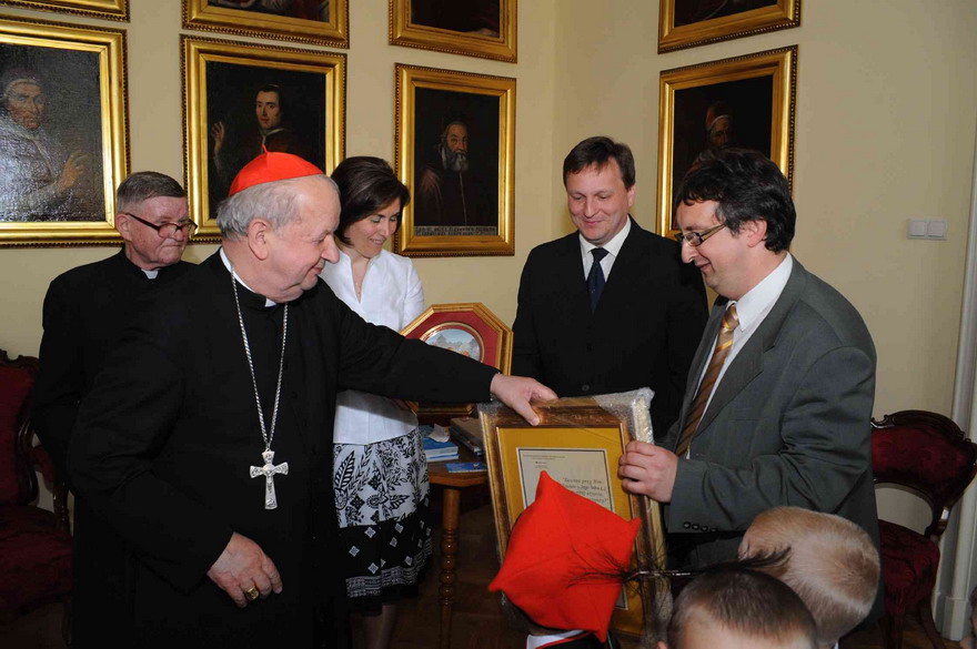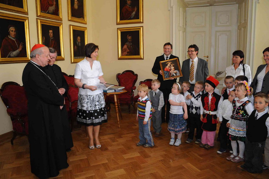 Na koniec spotkania wręczyliśmy Jego Eminencji ks. kardynałowi Stanisławowi Dziwiszowi portret Matki Bożej łaskawej - Księżnej Wieliczki namalowany przez Elżbietę Kalwajtys - prezes wielickiego Art - Clubu oraz bukiet czerwonych róż.