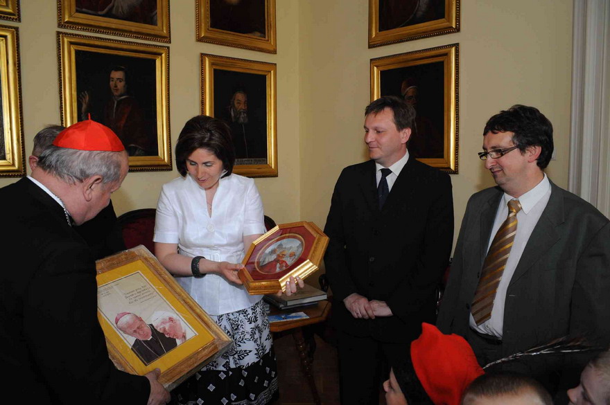 W zamian otrzymaliśmy portret Jana Pawła II namalowany na ceramice oraz okolicznościowy obraz przedstawiający Papieża Polaka z osobistym sekretarzem kardynałem Stanisławem Dziwiszem.
