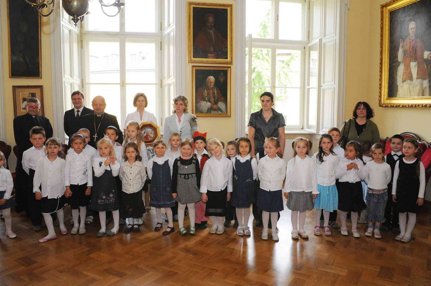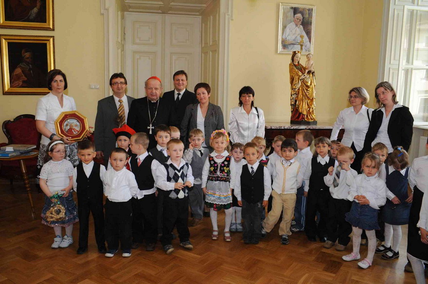 W spotkaniu z Jego Eminencją wzięło udział 47 dzieci, ks. proboszcz Władysław Jewiarz, wiceburmistrz Henryk Gawor, kierownik W.E Maciej Wojnarowski, pracownicy Przedszkola i Rodzice.