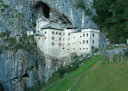 zdjęcie przedstawia Predjamski grad- obecna budowla pochodzi z wieku XVI, ale zamek w tym miejscu istniał już w wieku XII. Miejscowość Predjama 11 km od słynnej Jaskini Postojna najbardziej znanej jaskini w Słowenii.