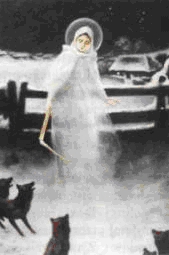 życiem codziennym. Matkę Bożą widzimy jak świeci zabłąkanym w drodze, odpędza