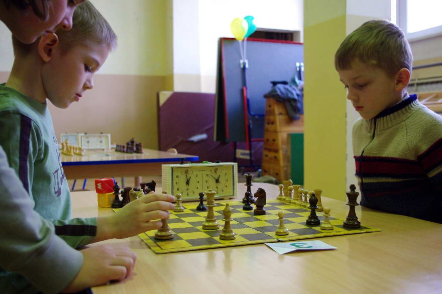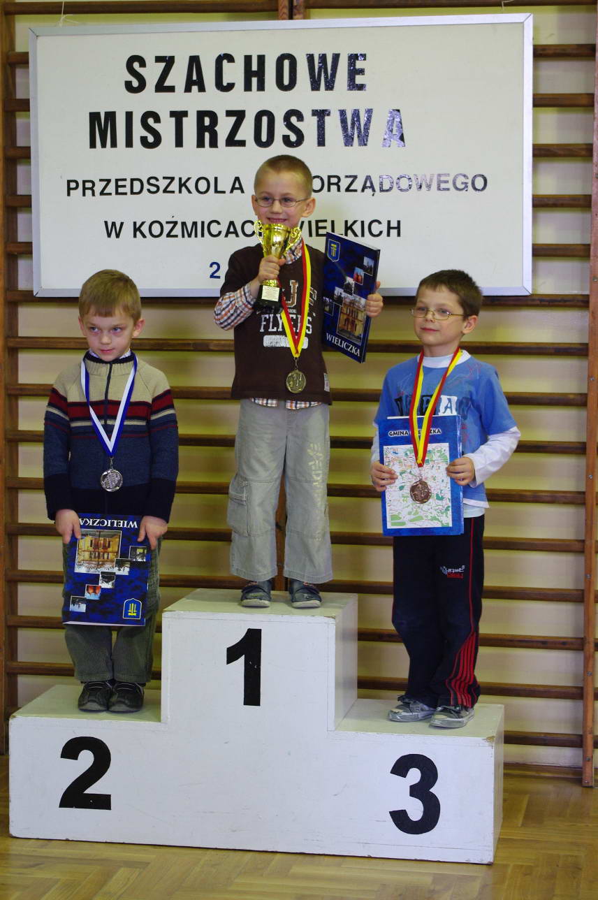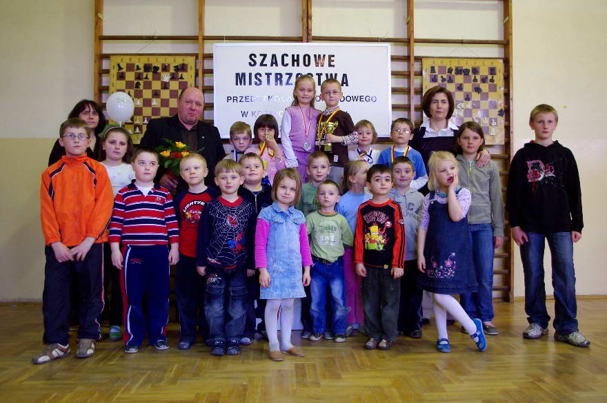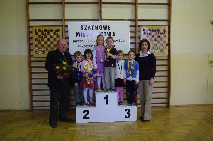 Szachowe mistrzostwa Przedszkola Samorządowego w Koźmicach Wielkich rozpoczęliśmy od zaśpiewania „Barki" ulubionej pieśni oazowej Papieża Polaka. Rozpoczynając oficjalnie mistrzostwa, dyr Ewa Kaczor przypomniała przedszkolakom, że Karol Wojtyła w latach młodości, zanim jeszcze otrzymał święcenia kapłańskie, interesował się szachami. Między innymi w 1938 roku uczestniczył w turnieju międzynarodowym w Krakowie, z udziałem takich zawodników jak J.Sajtar, A.Dahke, J.Gadaliński itd. (łącznie 16-tu, 15 rund).