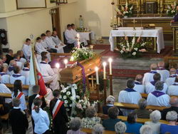 Cieszymy się, że twoje doczesne szczątki będą spoczywały na tutejszym cmentarzu parafialnym, bo gdzie indziej może spoczywać pierwszy proboszcz jak nie na cmentarzu, który budował. Bo gdzie indziej może spoczywać proboszcz jak nie na terenie parafii, którą tworzył i przy Świątyni, której był inicjatorem poświęcenia.