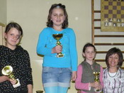 Turniej dziewcząt wygrała Klaudia Czajkowska z klasy V z 4,5 punktu wyprzedzając Joannę Gawęda, Julię Hajduk( z klasy II B), Magdę Trędowicz, które zdobyły po 4 pkt. Kolejne Aleksandra Paryła i Wiktoria Miękina zdobyły po 3,5 punktu w 5 rundach.