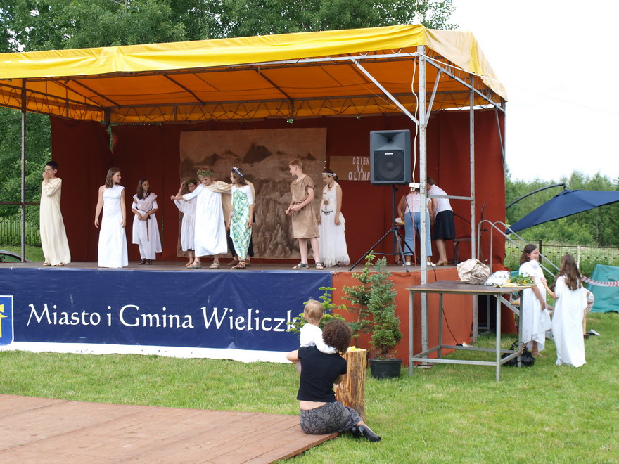 O godz. 16.00 uczniowie Szkoły Podstawowej sztuką „Dzień na Olimpie"rozpoczęli kulturalną część Parafiady . Grupa dziewcząt z Koźmickiego Gimnazjum przygotowała dwa układy taneczne w stylu disco a w tańcu hip-hop wystąpiła solo gimnazjalistka Natalia Tatarczuch. Program Parafiady uświetnił Zespół Regionalny „Zagórzanie" z Lubnia k/Myślenic - rodzinnej miejscowości ks. Stanisława . Występ taneczno-muzyczny Artystów widzowie nagrodzili gromkimi brawami.