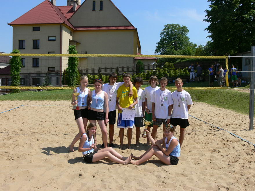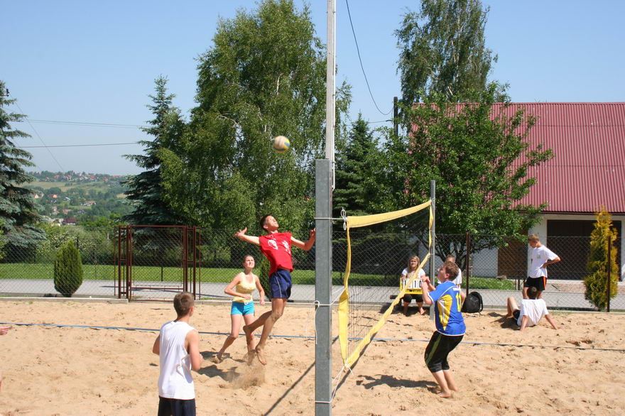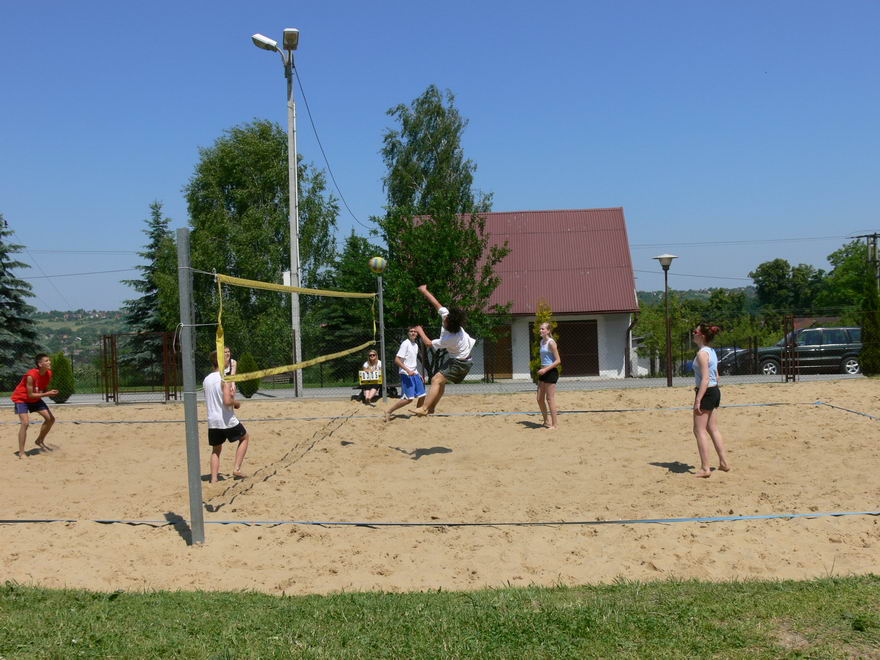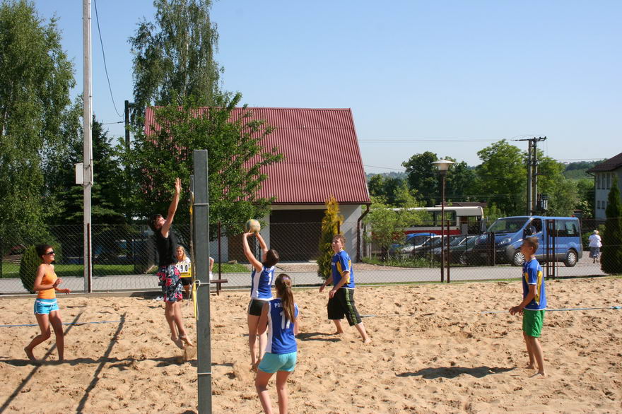 w Koźmicach Wielkich oraz Uczniowski Klub Sportowy Magnum. Przy pięknej słonecznej pogodzie Gimnazjaliście z naszej gminy pokazali, że boisko sportowe może być nie tylko miejscem rywalizacji sportowej ale także miejscem doskonałej zabawy, zachęcając w ten sposób do aktywnej formy spędzania wolnego czasu. Do turnieju przystąpiło 5 drużyn. Grano systemem każdy z każdym według przepisów i zasad piłki plażowej. Puchary i medale ufundował Urząd Miasta i Gminy Wieliczka. Poczęstunek i napoje zapewnili organizatorzy turnieju UKS Magnum. Turniej sędziowali i przygotowali nauczyciele Gimnazjum w Koźmicach Wielkich - Marek Rudny i Bożena Perz.