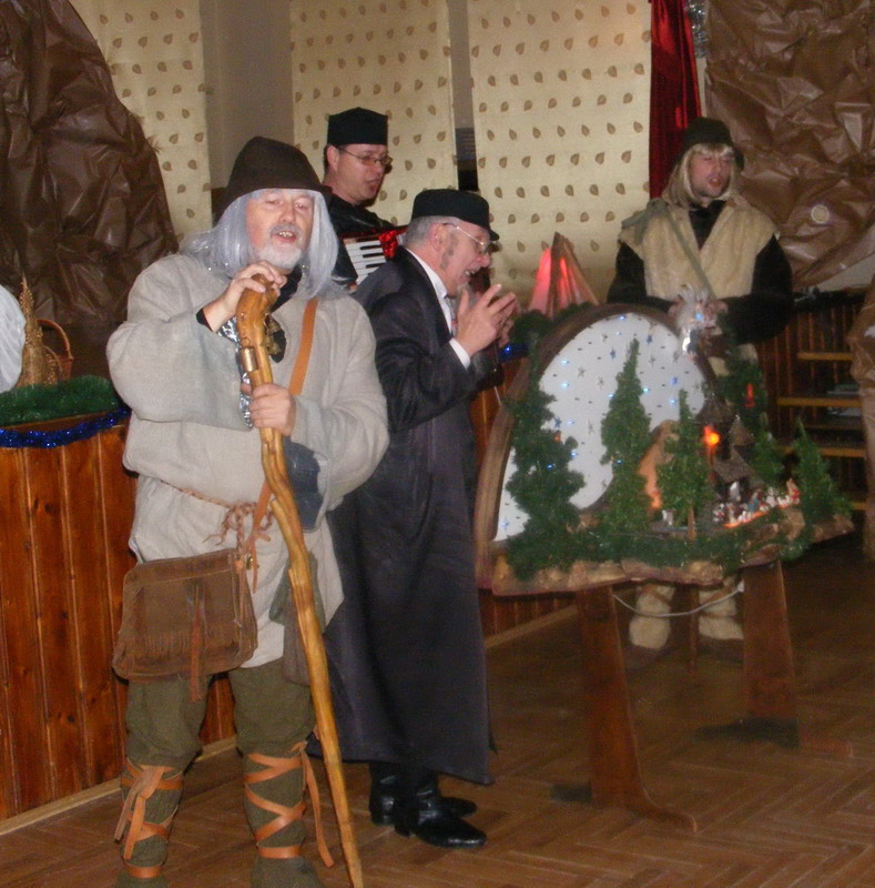 Profesjonalna grupa kolędnicza w składzie : Stanisław Anioł - znany artysta rzeźbiarz, górnik z wielickiej kopalni soli z synem Michałem - studentem AGH w Krakowie ( jako pasterze ) , Stanisław Knapik - artysta Opery Krakowskiej( kreujący rolę krakowskiego żyda ), Paweł Piotrowski - dr nauk teologicznych, muzyk, aranżer - rozradowała serca zebranych śpiewem kolęd i pastorałek z dziecięcych lat Babci i Dziadka. Wszyscy z zachwytem słuchali , a odważni śpiewali z kolędnikami, dzieci zaś podziwiały ruszające się postaci w krakowskiej szopce i bacznie obserwowały rezolutnego żyda.